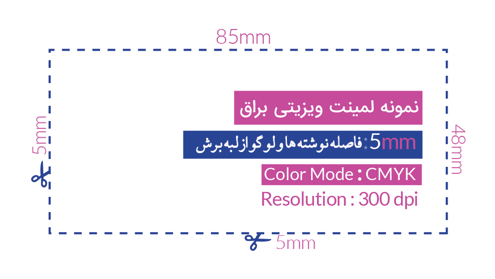 کارت لمینت ویزیتی براق ، محصولی است که در سایز کارت ویزیت های معمولی بوده و از لحاظ جنس به صورت لمینت می باشد. سایز 48*85 میلیمتر برای این نوع کارت ویزیت لحاظ گردیده است.